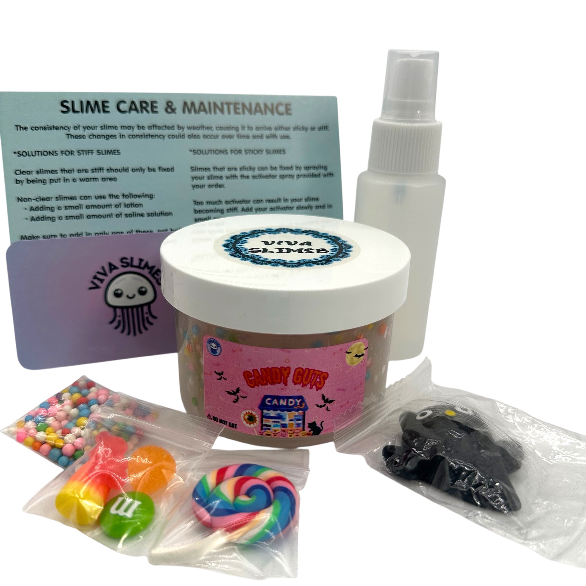 - candy corn, m&m, sour bear, gumdrop, multicolor lolipop, colorful foam beads