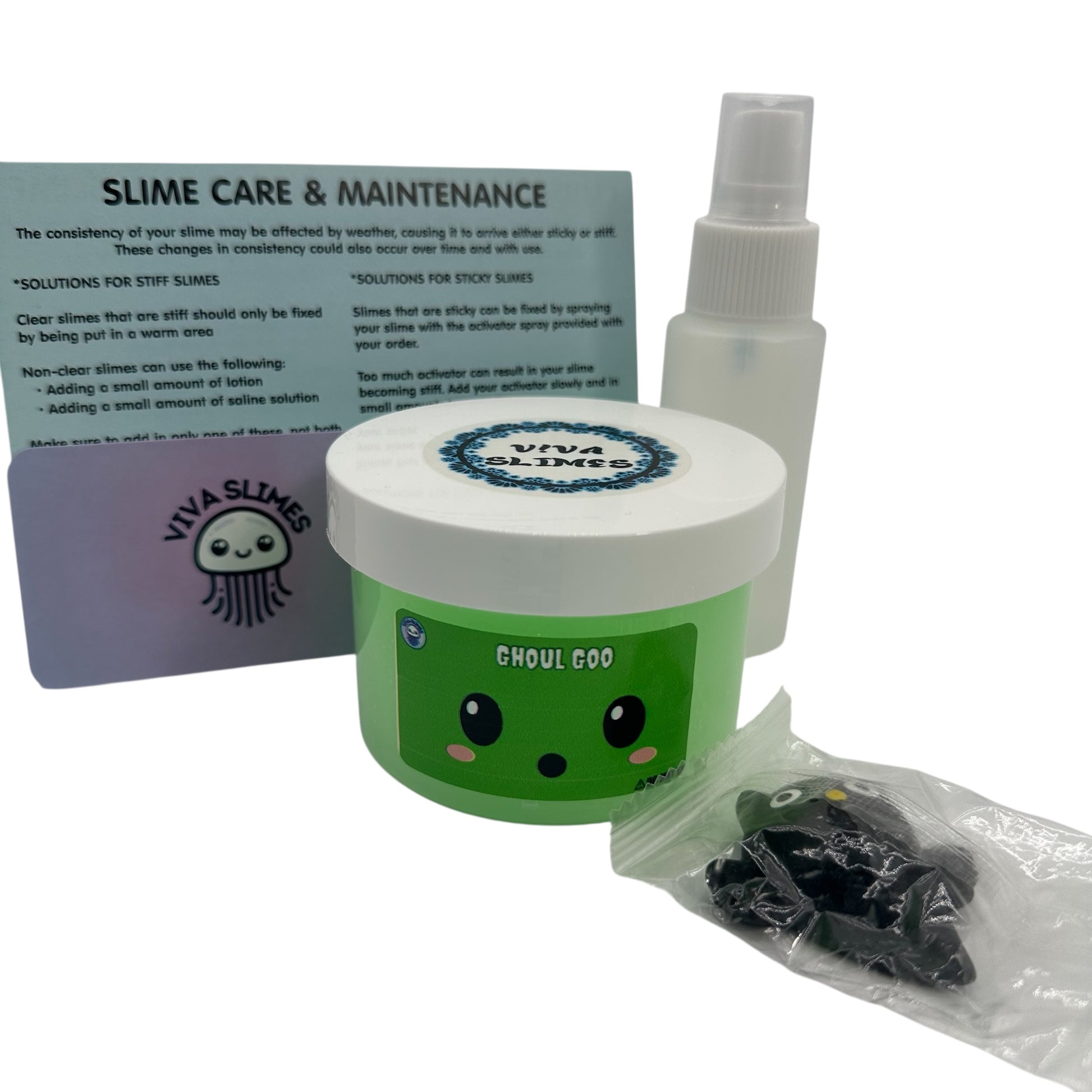 Description: A green glow in the dark color slime, scented just like a linen breeze and it comes with shimmery glitter!